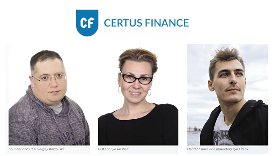 On the cusp of marking their fifth anniversary this June, founder and CEO Sergey Kazlouski, head of sales and marketing Ilya Firsov and COO Sonya Rashell have built up Certus Finance into a global player with main offices in St. Petersburg, Russia and Minsk, Belarus, while being legally incorporated in numerous countries spanning Germany, Estonia, Singapore and beyond.