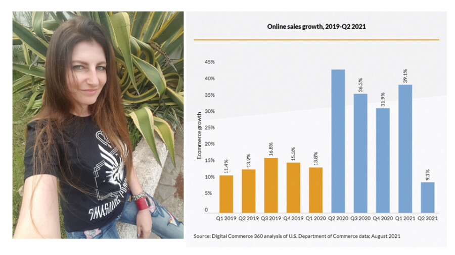 Figures from Q1 2021 show that the coronavirus was still fueling online spending, with sales surging 39% year over year in that quarter. The statistics from Q2 2021, however, are a different story and show ecommerce growth slowing significantly. Part of that, of course, is due to folks returning to in-person purchasing.