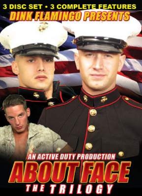 About Face 1 (2007):Shane and the boys got together to shoot the shit as they shoot pool. In the middle of their social, a "new guy" walks in. Unable to devise a name for himself, he is now known as FNG (fucking new guy). Elijah and Lance join in the fun, then Elijah finds Adam in the Jacuzzi and tops him long and hard. About Face 2 (2007): Watch sexy real marine Hops as he does an about facer and sucks some cocks for the first time. He’s been dishing out some rough sex, but can he take a cock himself? Hot and dirty threesomes. Hard, rough, man-on-man action. It’s an ass-splitting good time! and About Face 3 (2008): See the other side of these men... Travis, Trey, Damien and Shane do an about face after hours. From hard corps military men to sex buddies, the transformation is complete. Watch Travis’ big thick cock pound Trey’s ass like a piston as he writhes in glorious pain. New military meat: Travis. Big-dicked boys. Three-way suck-a-thon.