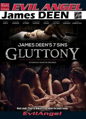 James Deen’s 7 Sins: GLUTTONY” continues the iconoclastic director’s inventive, artistic conceptual porn series. The feast of food and flesh is a decadent view of shameless appetites and naked consumption. In stylish lingerie, curvy BBW Harper Hughes lies inert on a table set with casseroles, vegetables, desserts and wine. Eight insatiable diners — sweet Sara Luvv, Jessie Parker, Lyla Storm, Karmen Karma and meaty studs Seth Gamble, Christian, Tommy Pistol and Toni Ribas — dig in, sensually feeding each other by hand and, soon, feasting. Clothes are stripped away and the room fills with sexual slaps, moans, screams. The camera revolves around the table as naked bodies suck, lick, eat and fuck ... all surrounding Harper, the motionless centerpiece. Oral gratification and manhandling cock rides get messy, till the pretty bodies and orifices are mashed with potatoes, streaked with gravy, buried in cranberries, smothered in orgasms. Finally the gluttonous orgy descends upon Harper, massaging and manipulating her fleshy form, tasting and fucking her.