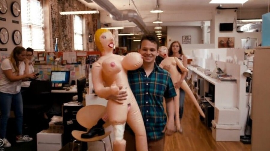 In a bit during “The Daily Show” host Jon Stewart’s final episode, the satirical news program takes a look behind-the-scenes to showcase the crew who makes the show possible. The segment featured a walk-through of the production offices to meet writers, producers, editors – and a foursome of Pipedream’s blow-up dolls.