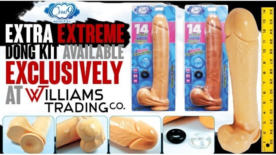 The new kit rounds out the entire Cloud 9 Novelties Extreme Series which includes 10”,14” and 16” extreme dongs, which all feature suction cups. The Extra Extreme Dong kit is available in two colors, flesh and mocha. The new kit is included in Williams Trading’s month-long Labor Day sale going on now until Sept. 30, 3 p.m. EST.