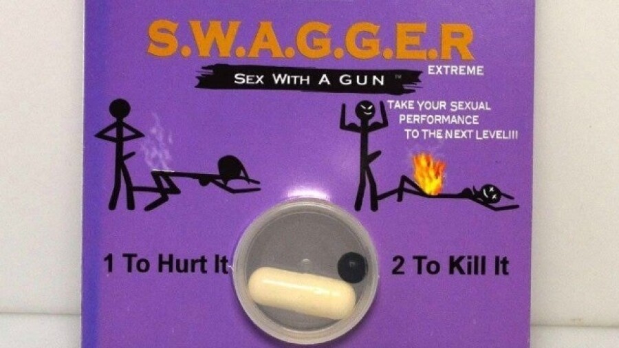The product, however, is billed as being part of the “next generation in herbal male enhancement” on its labeling, which also calls the pills equivalent to “sex with a gun.”