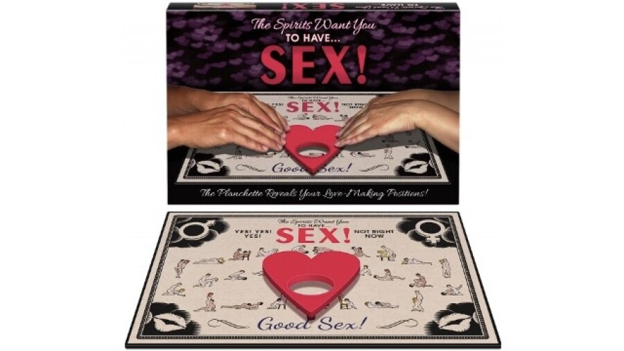 "The spirits have spoken and they want you to have sex," says the game's description. "You and your lover place your hands on the planchette, with it placed in the center of the game board. Then you ask the spirits to help you figure out what sex positions to try. You also ask it 'yes' or 'no' questions about kinky things you think your lover might want to try."