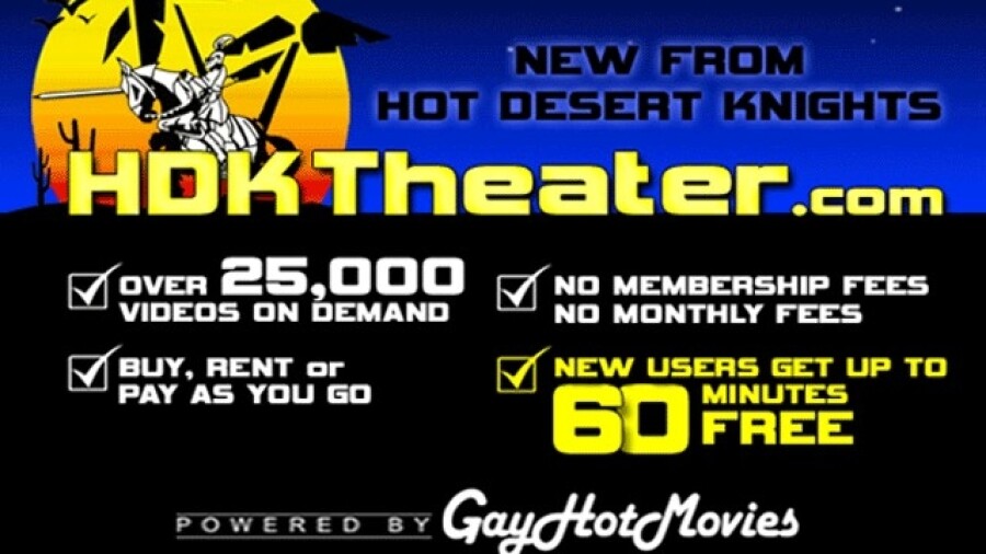 The new theater, which features a "fresh, state-of-the-art, user-friendly interface," will host the complete Hot Desert Knights catalog, along with 25,000 titles from the top studios in the gay adult industry.