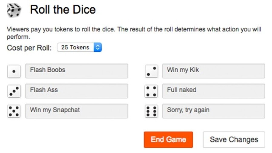 According to the company, the game is a quick and easy way for performers to pump up earnings as their fans tip for various actions as dictated by the assigned numbers on the dice.