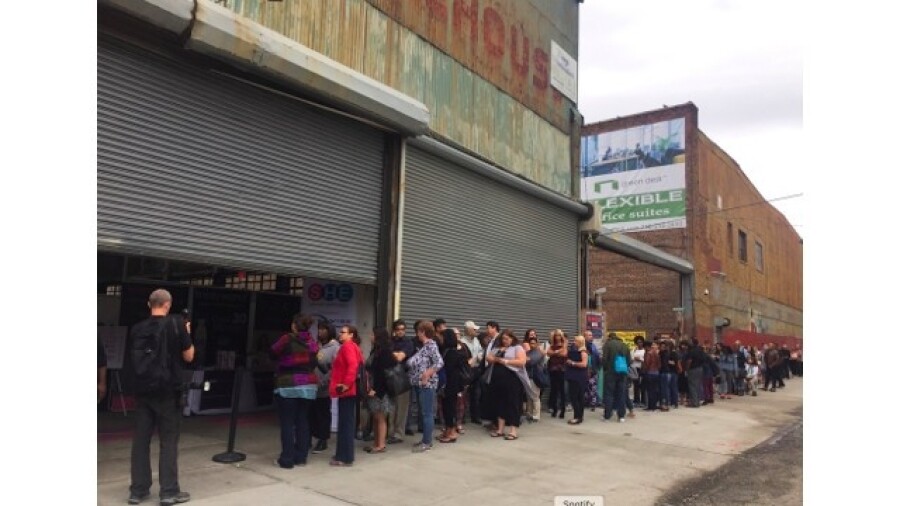 A long, winding line of attendees that wrapped alongside of the historic Greenpoint Terminal Warehouse greeted SHE spokesperson Emily Morse as she cut the ribbon, signaling SHE NY’s official opening.