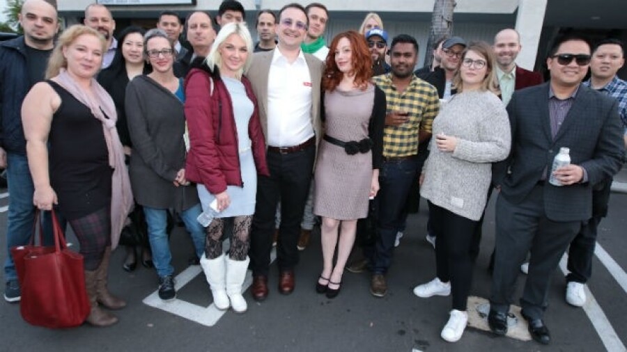 Once all of the tours came to an end, the XBIZ 2017 attendees grouped up for a photo in front of Studio 20. The camaraderie was palpable on the bus ride back to the Andaz, as savvy entrepreneurs of all stripes discussed the marvels and ingenuity they witnessed at the world class cam studio. Many shook Mugur's hand with gratitude and respect, congratulating him for achieving such tremendous success and providing a stable environment in which cam models can take their career to the next level.