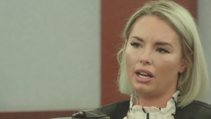 Pictured: Christy Mack on the witness stand