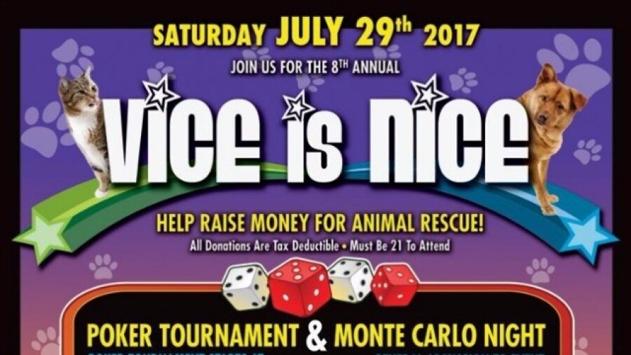 General admission tickets to "Vice Is Nice" are $20 online and $25 at the event. To participate in the poker tournament, seats are $55 in advance, including admission, or $65 at the event. There are Uber drop-off points and parking assistance. Attendees must be 21 years of age. For more information or to pre-register, call (818) 257-0551 or visit TheAnimalRescueAlliance.org.