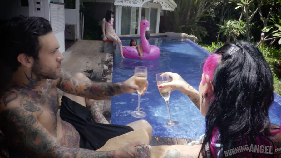 “It’s a beautiful movie — shot in a beautiful location with beautiful people in it,” Angel said. “A really fun mix of girl/girl, boy/girl, orgies and threesomes — with some anal to boot. It’s such a sexy and intimate movie that’s definitely different than what I normally do. I think my fans will enjoy seeing me in a colorful bikini as opposed to something torn, strappy and black.”