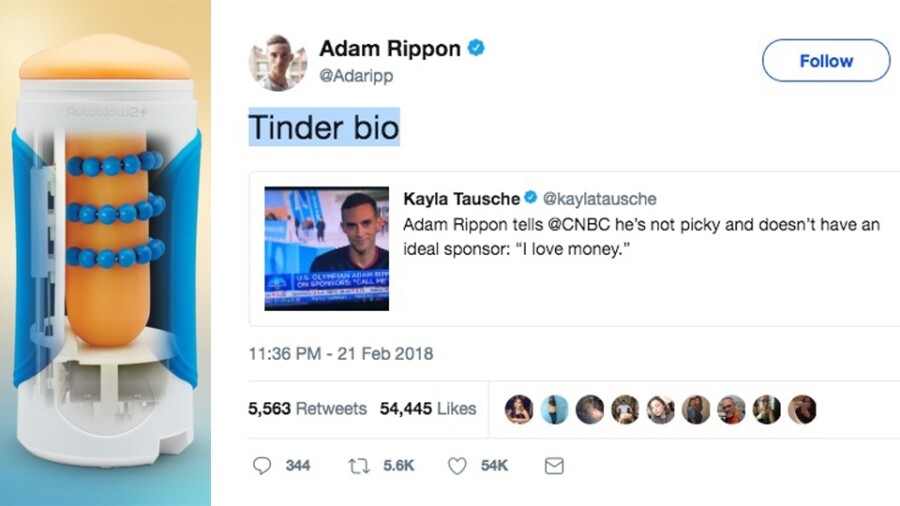 “Adam, I too love money… why else would I have invented such a product? We’re the third best-selling male sex toy and you won third place at the games. The Autoblow is the American champion of automatic masturbation devices and you are the American champion of ice skating,” Sloan explains. “Your hard work and dedication to your sport has inspired millions; now it’s time to cash in. Take our money and represent our brand to the millions of men who admire you.”