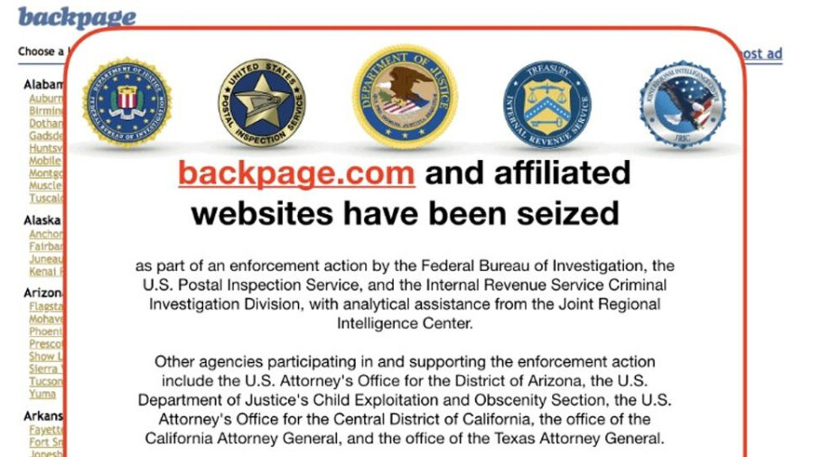 “Backpage.com and affiliated websites have been seized as part of an enforcement action by the Federal Bureau of Investigation, the U.S. Postal Inspection Service, and the Internal Revenue Service Criminal Investigation Division, with analytical assistance from the Joint Regional Intelligence Center,” the announcement read.