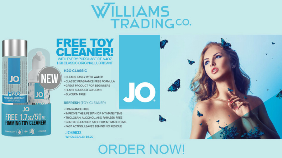 PENNSAUKEN, N.J. — Williams Trading has announced a new offer presented in collaboration with System Jo. Williams Trading Co is offering a free travel toy cleaner with every purchase of H2O Classic 4 oz. lubricant while supplies last.