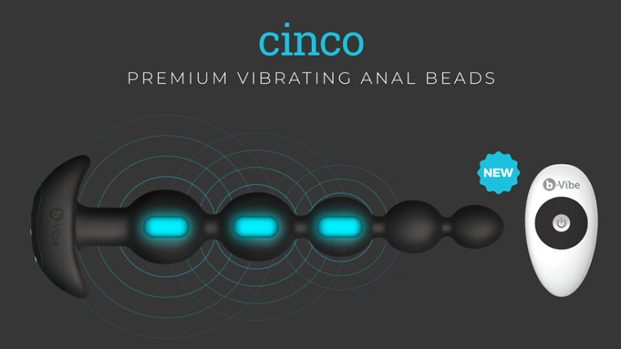The b-Vibe Cinco features flexible tapered size beads, an easy-grip handle and three powerful motors that offer six vibration levels and 15 vibration patterns. Made of sleek, body-safe silicone, the b-Vibe Cinco is rechargeable and operated by remote control, making it “perfect for couples, as well as for effortless, hands-free solo play,” the company said.