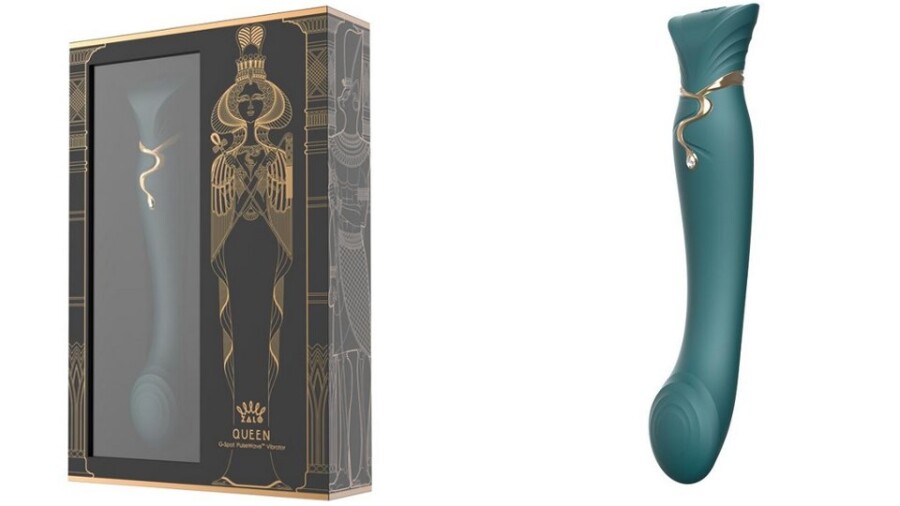 The Cleopatra-inspired unique snake charm design control features a Swarovski crystal and three separate buttons that function to control heating, the vibration motor and the wave motor. The suction accessory can be used for clitoris stimulation and nipple play. The Queen by ZALO uses body-safe Dow Corning food-level silicone meeting with FDA requirements with an exclusive Softek silicone layer.