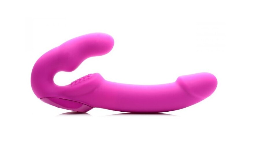 The vibrating strapless strap-on features two multifunction motors encased in body-safe silicone and USB charging.