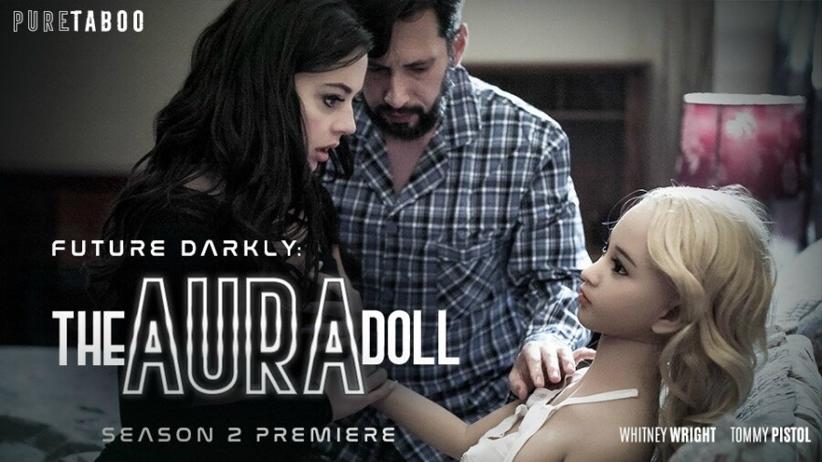 "The Aura Doll" focuses on a young woman named Becca (Whitney Wright) who meets up with a handsome older man, Robert (2019 XBIZ Best Actor Tommy Pistol), who wants to participate in a threesome with Wright and his special companion Harper — a blonde, curvaceous and very lifelike silicone Aura Doll.