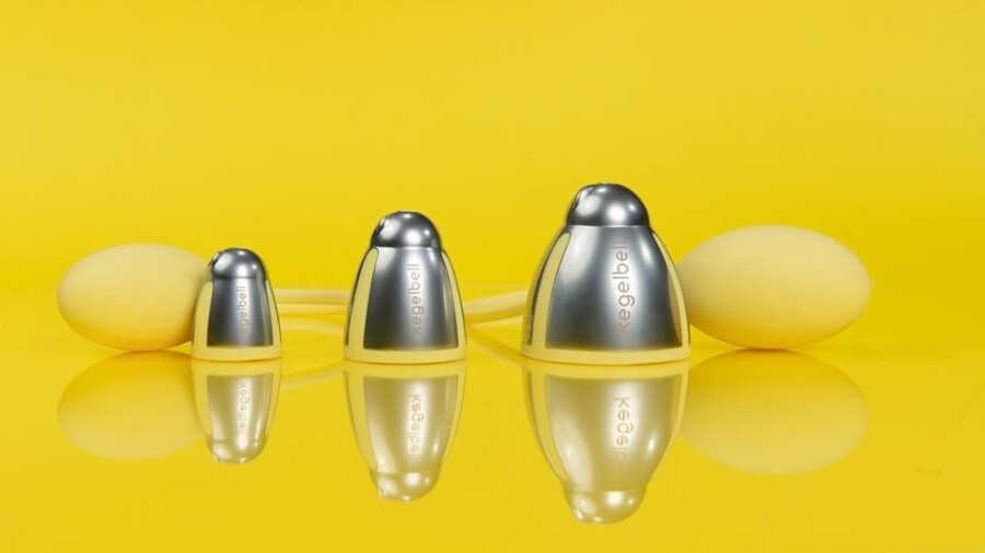 According to a rep, "The Kegelbell system is FDA registered and, rather than a traditional set of insertable internal weights, Kegelbells instead hang outside of the body and stay in place via a comfortable silicone bulb that is worn internally. Each set comes with two different sized bulbs that attach to three stackable weights, offering 8 to 16 training levels ranging from 30 to 250 grams, allowing users to level up incrementally as strength and endurance increases."
