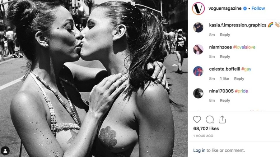 LOS ANGELES — The official Instagram of Vogue Magazine shared a photo of 2019 XBIZ Female Performer of the Year Abigail Mac and award-winning Adriana Chechik kissing passionately at the L.A. Pride parade.