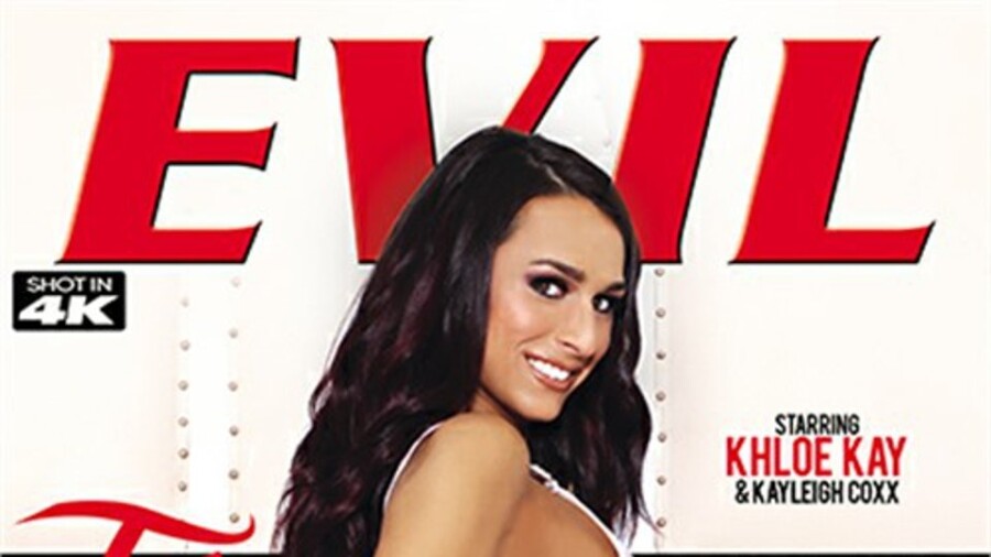 LOS ANGELES — Starlets Khloe Kay and Kayleigh Coxx take on four studs apiece in “TS Gangbangs 2” for Evil Angel and director Aiden Starr.