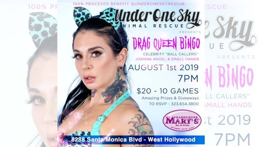 LOS ANGELES — Join Joanna Angel and Small Hands tomorrow at Hamburger Mary’s in West Hollywood for a Drag Queen Bingo fundraiser benefiting Under One Sky Animal Rescue.