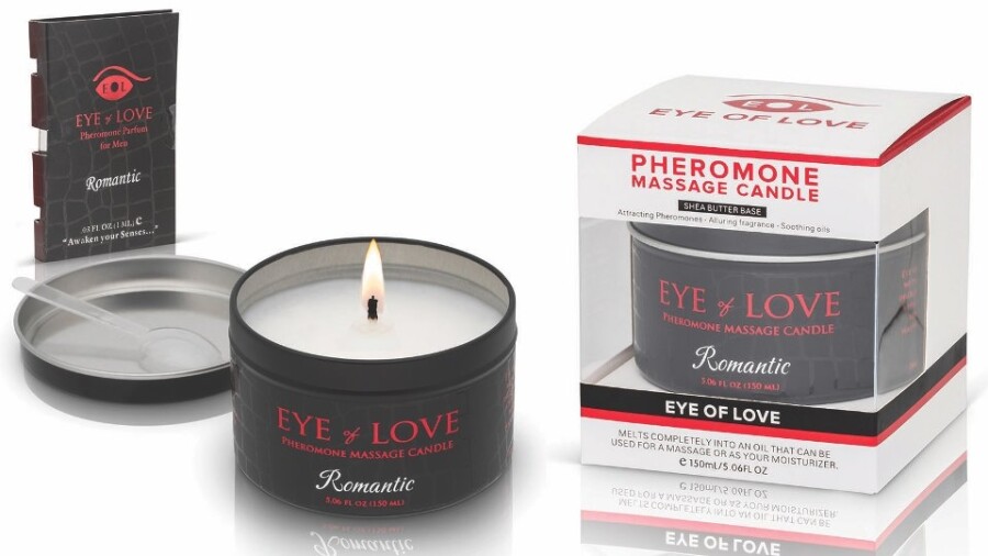 SAN DIEGO — Eye of Love’s popular Pheromone Massage Candles now include a free matching Pheromone Parfum sample and come in a gift box to bolster holiday sales while cross-promoting Eye of Love products.