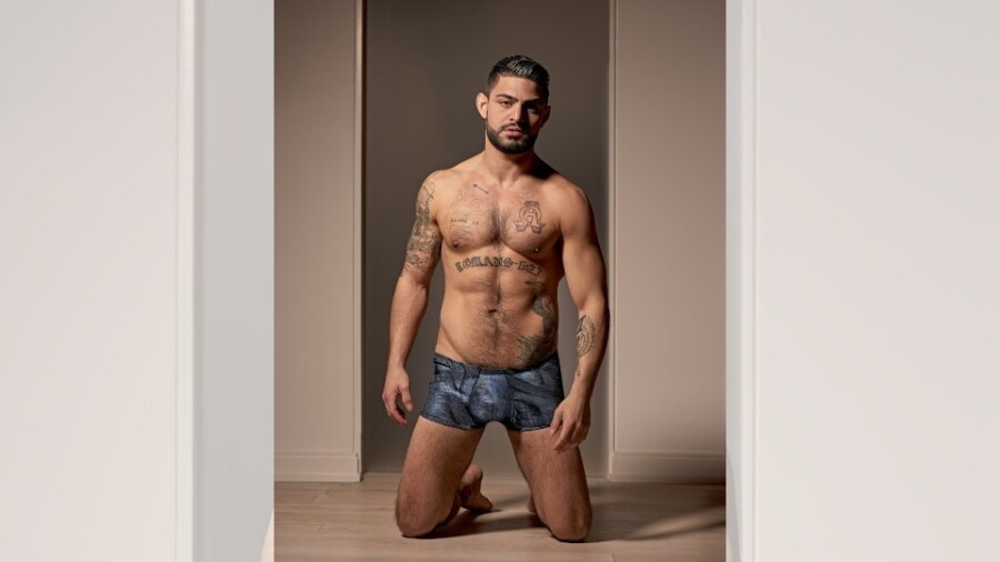Fashioned from holographic fabric with a burnout foil print pattern overlaid on top of a black background, each piece in the line has "a dazzling effect," enthused a company rep. Available in the classic Mini Short, Moonshine Jock Brief, Micro Thong V-Back and the Posing Strap styles, "if you like intimate wear that is modern and distinctive, Blue Streak will be just your speed."