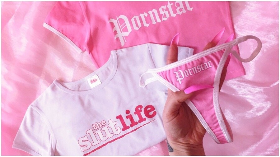 Customers who add the Slut Life and Pornstar crop-tops and the Pornstar thong to their shopping carts will receive the thong for free.