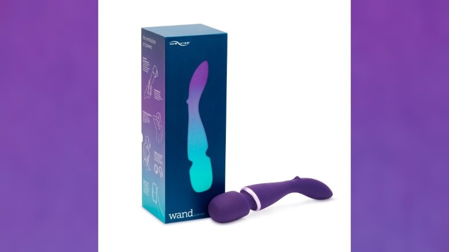 "The Wand by We-Vibe is an ultra-powerful cordless body massager made with royal purple body-safe silicone and enhanced by a flexible silicone head that rumbles with intense stimulation," said a rep. "The Wand comes with two custom attachments made in complementary teal silicone: 'Fluttery' for clitoral stimulation and 'Stroke' for penis stimulation."