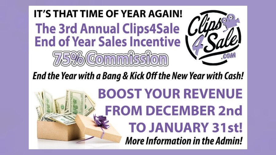 Clips4Sale founder, Neil, commented on the promo, stating, “Clips4Sale has once again made it easy to put more money in our models and producers’ pockets. This is a great way to end the year with a bang and kick the new year off with cash. Everyone looks forward to this incentive every year.”