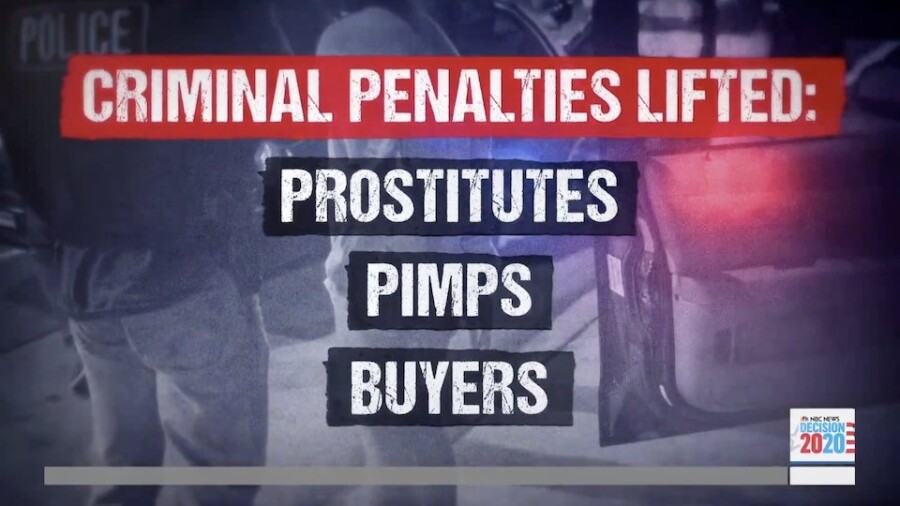 The report, produced by NBC senior national correspondent Kate Snow, was presented in these terms: “A group is pushing to decriminalize buying and selling sex and managing people for prostitution, but others in the sex trade community are saying it’s a terrible idea. The issue has made its way to the 2020 campaign trail.”