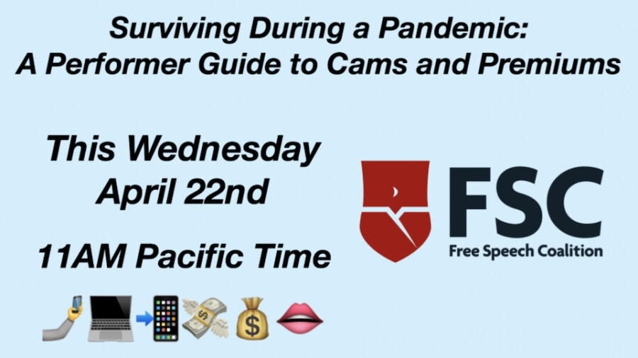The Free Speech Coalition will host a webinar Wednesday, April 22, to help performers better transition to cams and premiums during the extended shutdown.
