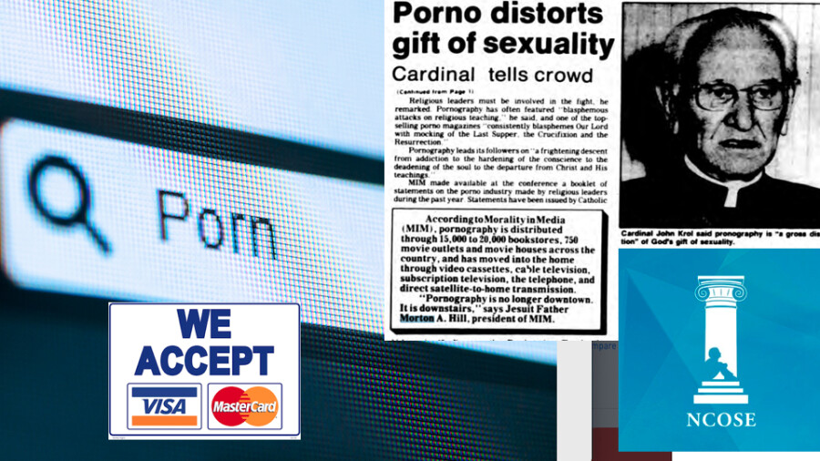 Image: Anti-porn propaganda (1985) by NCOSE, under their previous name Morality in Media. Back in the 1980s, the organization featured clergymen prominently as their spokespersons.