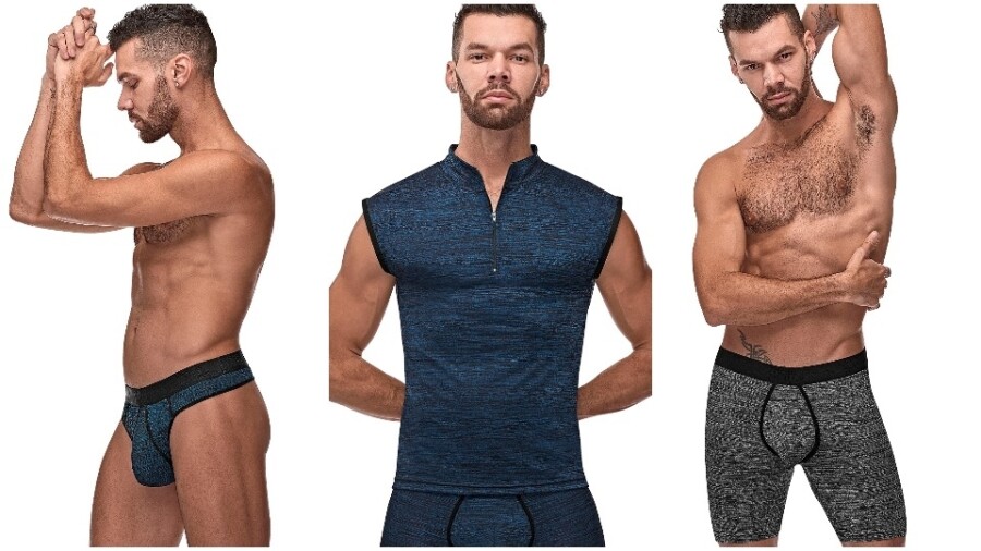 "These lightweight and breathable garments are made from a stretch material that truly heightens performance. Your athletic build will really emerge in four sporty selections," a rep explained, "including long leg enhancer shorts designed to assure complete coverage during exercise; a multifunctional zipper muscle tank top that becomes a mock turtle neck when zipped and collared neckline when open; and a sport thong and sport jock with enhancing pouches that offer "all the comfort and support you expect from Male Power."