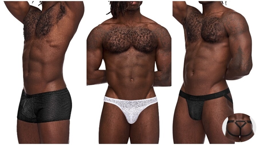 "The garments are cool and comfortable, perfect for warm weather and sultry moods. Choose from the traditional bong thong, mini-pouch short and always-popular strappy ring jock," the rep continued.