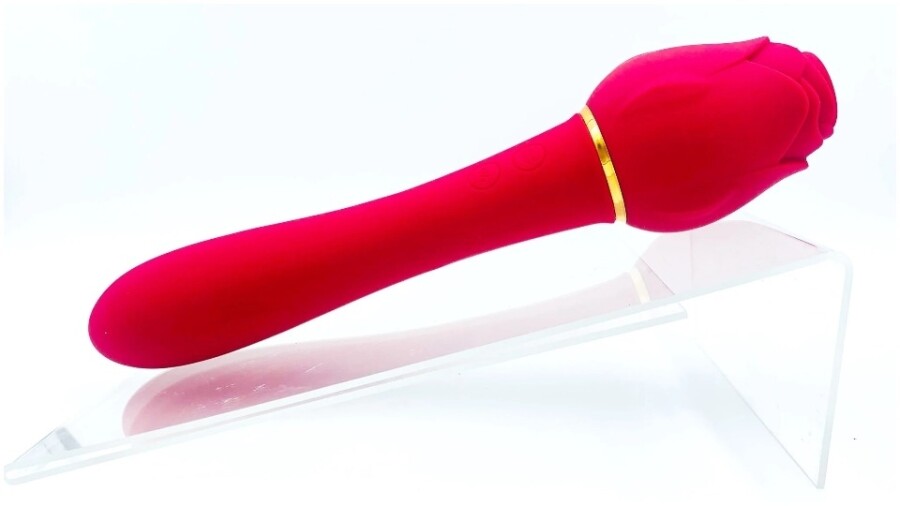 The Suckle Rose offers "a discreet sucking feature in the rose bud and 10 different settings in the vibrating stem," a rep explained. "This dual-purpose novelty product contains two quiet motors that can work separately or together to create multiple sucking and vibrating sensations for you — or for you and an accomplice."