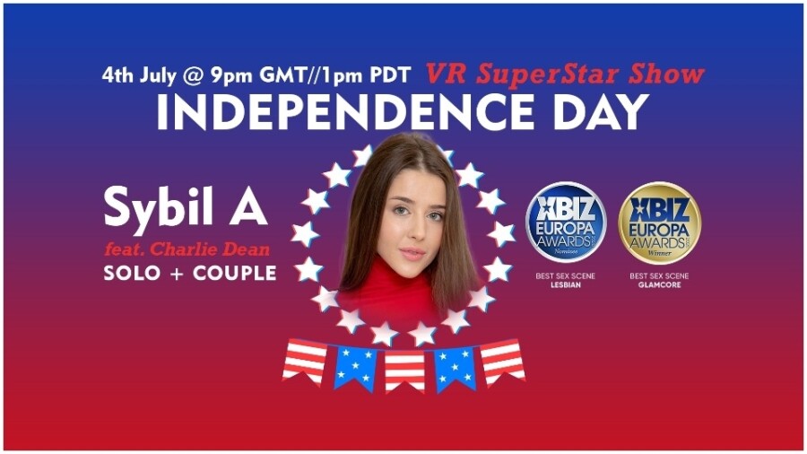 LOS ANGELES — Dreamcam, once again in collaboration with SexLikeReal and Stripchat, will host a two-hour "VR Superstar" livecast on Sunday, July 4, at 1 p.m. (PST)/9 p.m. (GMT) featuring Sybil A and Charlie Dean.