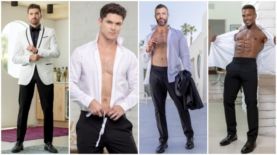 "Husband-to-be Chris visits his shoe shiner Jack for one last polish of Jack’s tight hole," the rep said. "Best man Austin is joined in the shower by groomsman Shane to get his ass spread open. After enjoying a cigar by the pool, Cole breeds Adrian in the kitchen. While the groom watches, wedding party member Shane and tailor Jay fuck on the bed. And groomsman Devin has one last hookup with the groom before the ceremony. ‘Inseam’ will have you loosening up that collar, dropping those trousers and letting your inhibitions fall to the floor with your clothes."