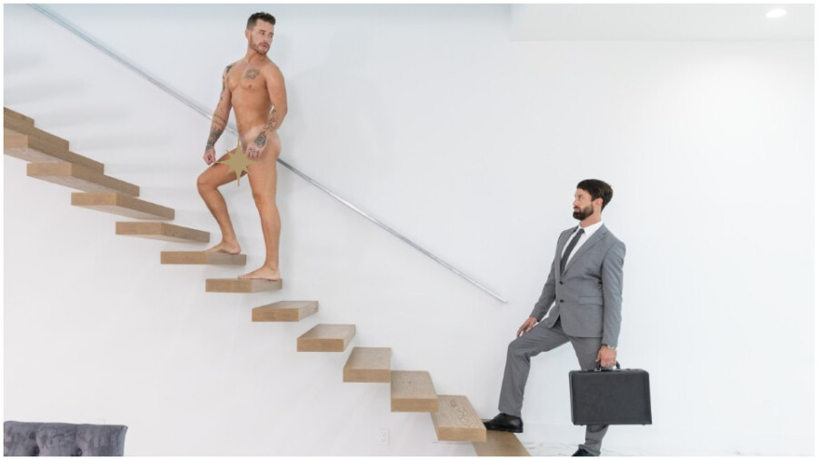 "In the debut update of ‘Power Play,' Alpha realizes that businessman Josh isn’t going to sign off on some important documents and close the deal, so he decides that the only way to complete this transaction is by wrapping his mouth around Josh’s uncut cock," teased a rep. "The aggressive billionaire approves of Alpha’s tactics and proceeds to thrust all nine of his inches into Alpha’s desperate mouth before using his tongue to service his furry hole. With Alpha prepped and wet, Josh slides in and fills up the stud."