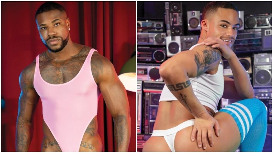 As the action opens, "Reign can’t help himself when he sees the fat bulge that’s sticking out of Beaux's grey sweatpants," said the rep. "When he pulls down the sweats, he's greeted by a skimpy white thong that is wedged deeply between Beaux's round cheeks. With his stringy underwear pushed to the side, a vocal Beaux whimpers as Reign rims and begins fucking him with his huge curved piece."