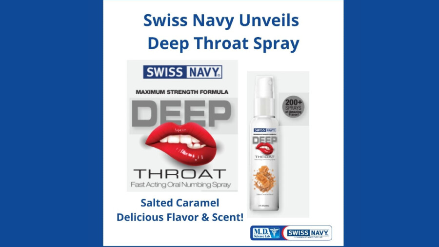 The company said it selected salted caramel for the flavor of its new throat spray due to its popularity. Pre-orders are now being accepted for Swiss Navy’s Deep Throat Spray in salted caramel; contact a preferred sales rep for additional details.