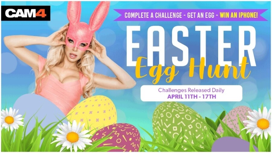 "CAM4 will release an exclusive daily challenge which contestants can complete to collect a [digital] Easter Egg. Each egg collected is an entry into the daily draw, and those who collect five Easter Eggs or more will be entered into the grand prize draw. Anyone who is signed-up as a CAM4 creator can participate in this exciting weeklong 'egg-stravaganza,'"