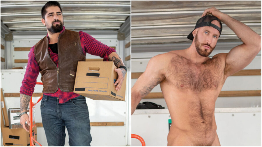 As the action opens, "Travis is pulling up late with his delivery for the burly Ryan and immediately drops to his knees to show his client why he was worth the wait," a rep said. "Still in the back of his truck, Travis gulps down his client’s cock and even lets Ryan have a taste of his throbbing dick before turning his muscular body around to be drilled."