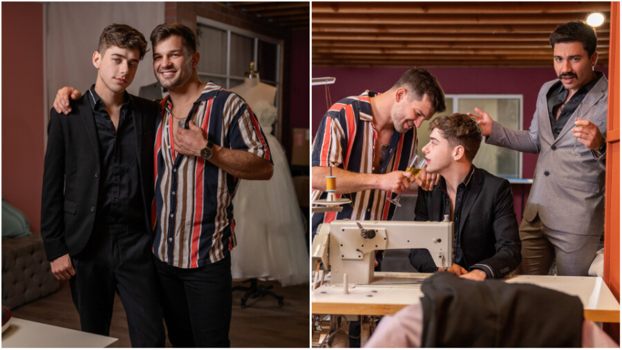 "After distracting the fiance, Joey sneaks to his secret peephole and spies on Brysen in the fitting room before stepping in to offer some help," continued the rep. "The guys kiss and Brysen fucks Joey up against the wall as his man sits outside, none the wiser, and even lifts him up for a stand-and-carry. The twink moans as he takes it doggy style, and Brysen spanks his ass before fucking his face. Joey rides the top before inviting Brysen back for another fitting."