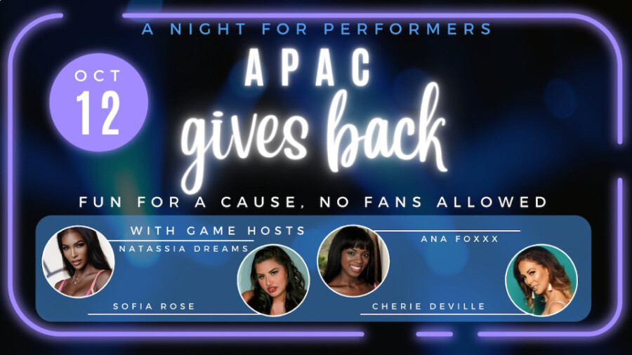 LOS ANGELES — The Adult Performers Advocacy Committee (APAC) is hosting its "APAC Gives Back: A Night for Performers" charity fundraiser Wednesday, Oct. 12 at 8 p.m. (PDT).