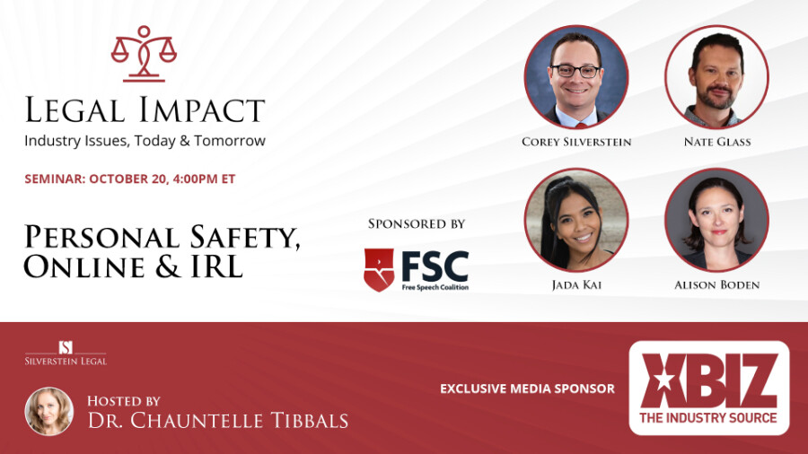 Live "Legal Impact" webinars are free to attend for all members of the adult entertainment community and will be posted subsequently on MyAdultAttorney, Adult.law and XBIZ.tv.