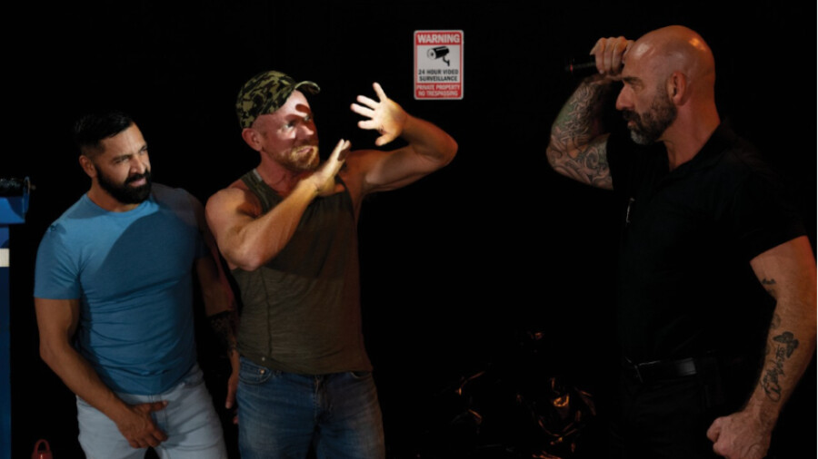 The action opens with parking garage security guard Sebastian catching Pacifico and Eric the Red having public sex in the lot. He informs them that "if they want to stay in the garage, they’re going to have to drain his nuts first," said a rep. "The two agree and after servicing the daddy’s giant dick, they’re left alone to fuck and fist each other all over a dirty tarp."
