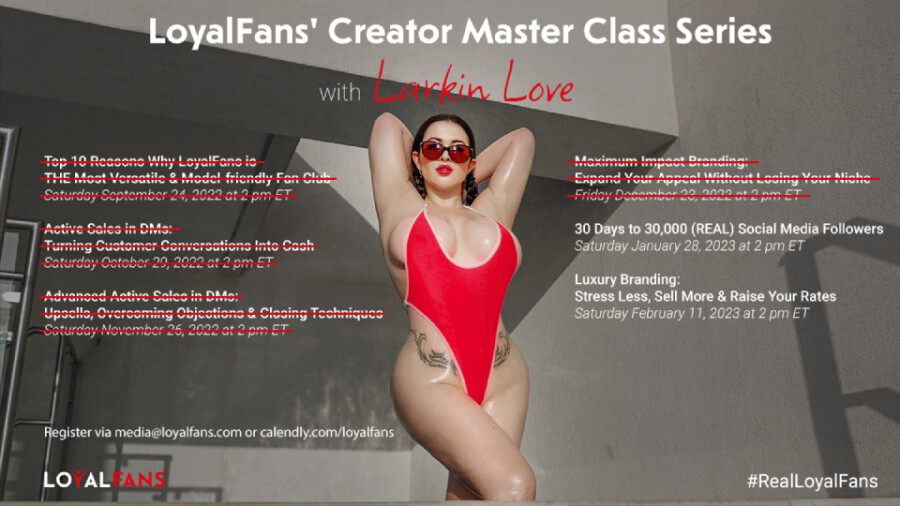 LOS ANGELES — LoyalFans will hold the fifth installment of its "Creator Master Class Series, with Larkin Love," on Saturday at 2 p.m. EST.