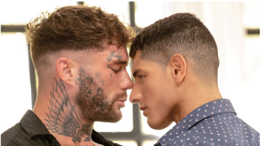 As the action begins, "the first stop on the journey is Joel Hart’s private studio," said a rep. "There, the tattooed top becomes fixated on photographer Bastian Karim’s every move before setting his sights on pounding his muscular ass."